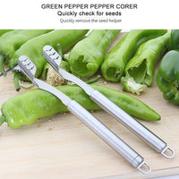 MULTIPURPOSE USAGE: Pepper chili seeder is also suitable for zucchini, cucumber, potatoes, Apple, etc. Easy to insert and twist the blade to remove the seeds of vegetables and fruits, suitable for any long and hard vegetables and fruits.
