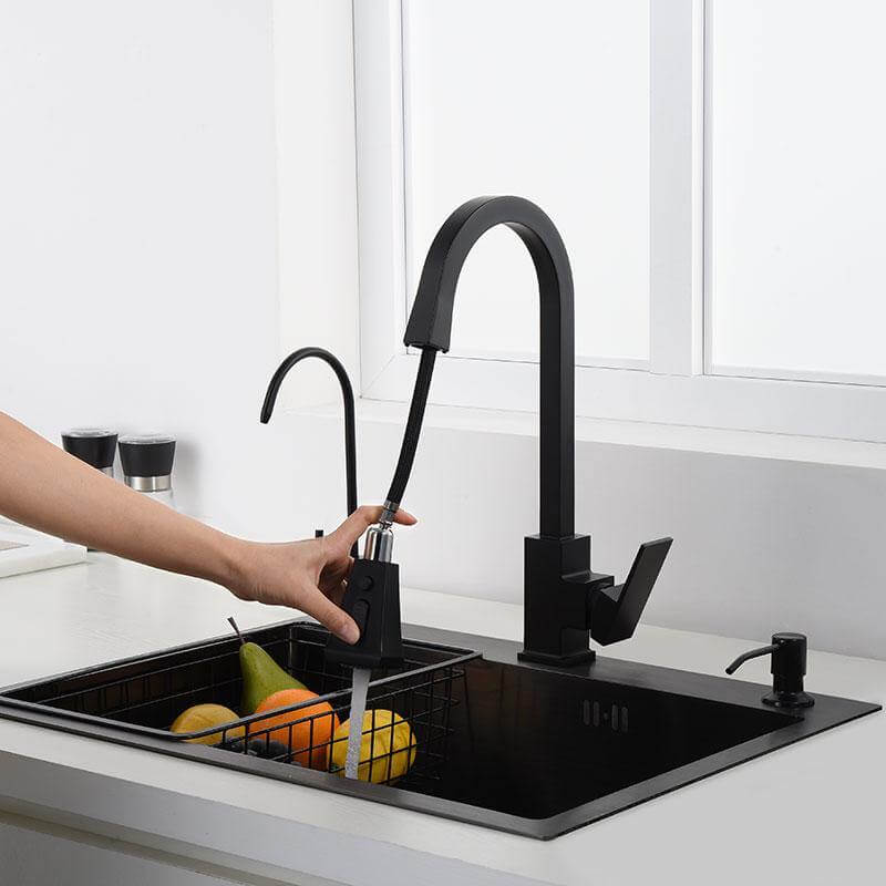 Ease of use- single handle kitchen faucet black operates with a shorter handle, allowing for installation with little backsplash clearance. High arc kitchen faucet spout height, making cleaning more comfortable.