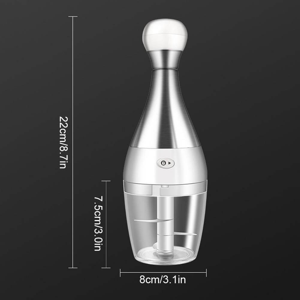 The garlic chopper is a fun and practical kitchen gadget that makes it easy to chop up garlic for use in recipes. This cute and creative garlic chopper features a bowl, a handle, and a stainless steel chopping blade. It has a unique bowling shape that makes it very easy to use. It is very useful to mince garlic without making a mess. It's a great kitchen tool.