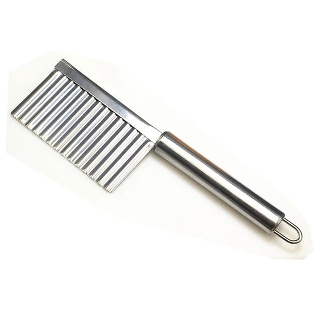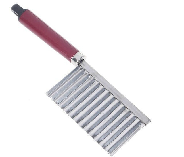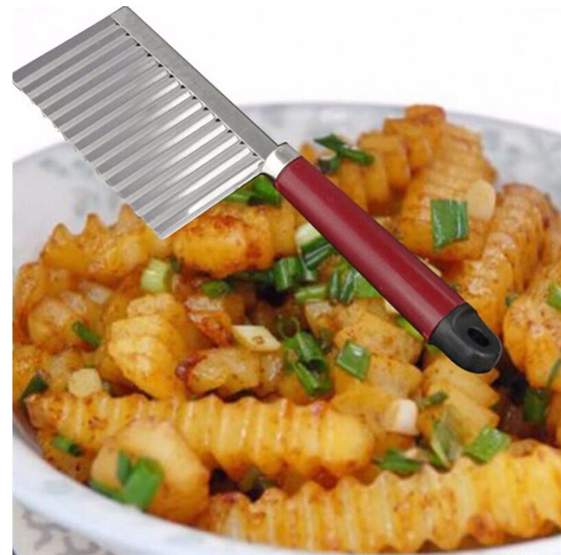• This potato chip cutter features a sturdy wood handle and a durable stainless steel blade for easy cutting, slicing, scraping and lifting.