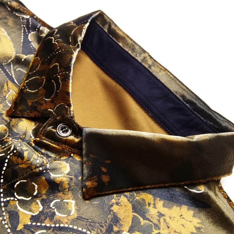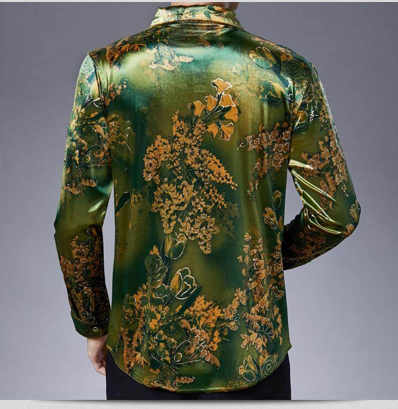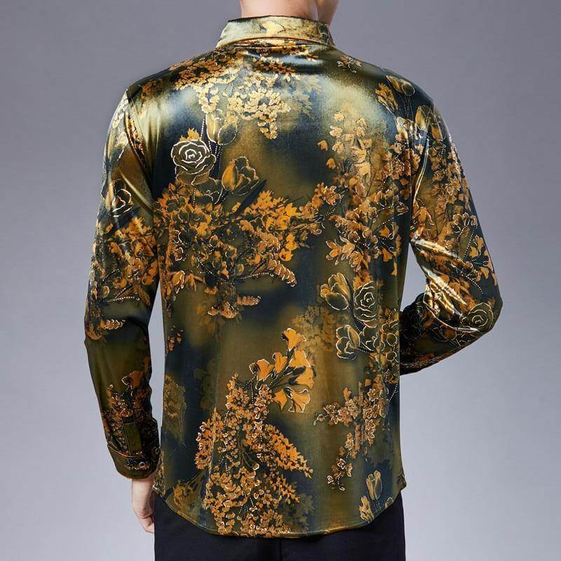 Stretch Velvet Flower Long Sleeve Men Shirt - Image 0