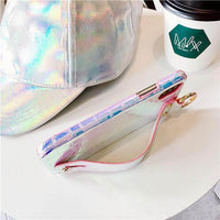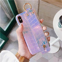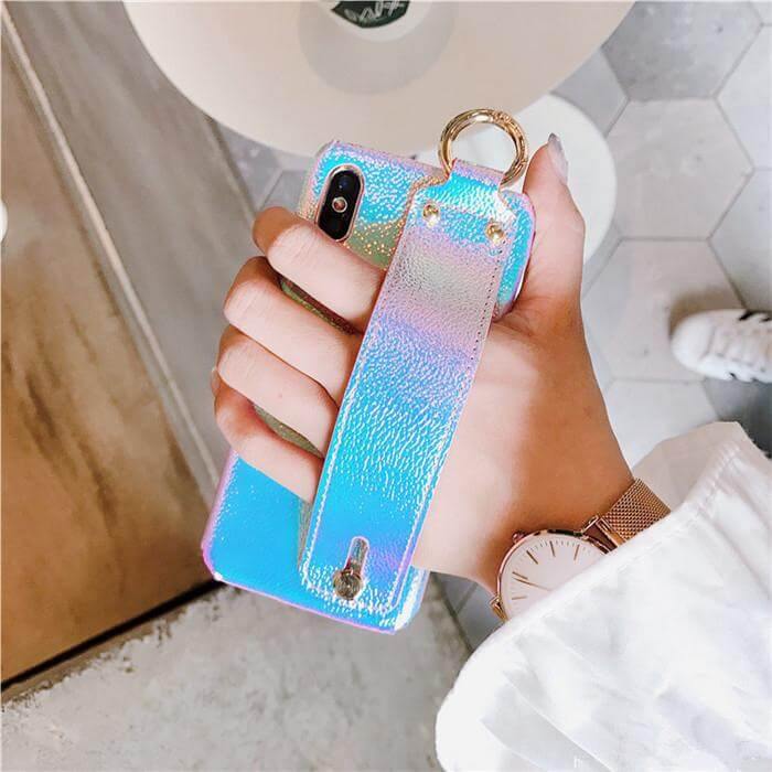 Bling laser PU Wrist strap phone cases for iphone X 7 7plus 8 8plus Wrist Grip Case for iphone 6 6s 6Plus Hard Back Cover