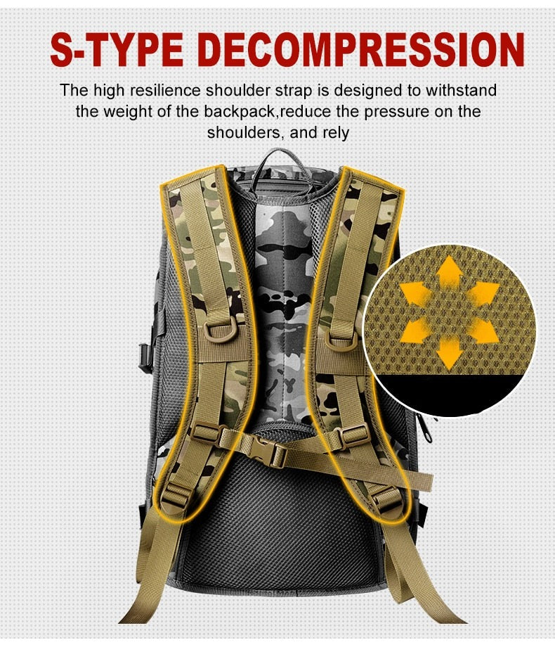 Adjustable shoulder straps and chest straps to suit your needs and meet your comfort. Suitable for outdoor sports such as running, climbing, rock climbing, hunting, cycling, camping, hiking, hiking, etc.