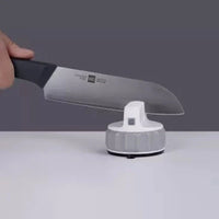 The Triple Wheel Whetstone Super Suction Mini Knife Sharpener is designed for home cooks and professional chefs alike who demand precision in their culinary tools. Featuring three dual-grit sharpening wheels, this compact sharpener effortlessly restores your knife's edge, ensuring perfect cuts every time. The super suction base keeps the sharpener securely in place during use, providing safety and stability. Its portable design allows you to sharpen knives anywhere, making it an essential tool in any kitchen.