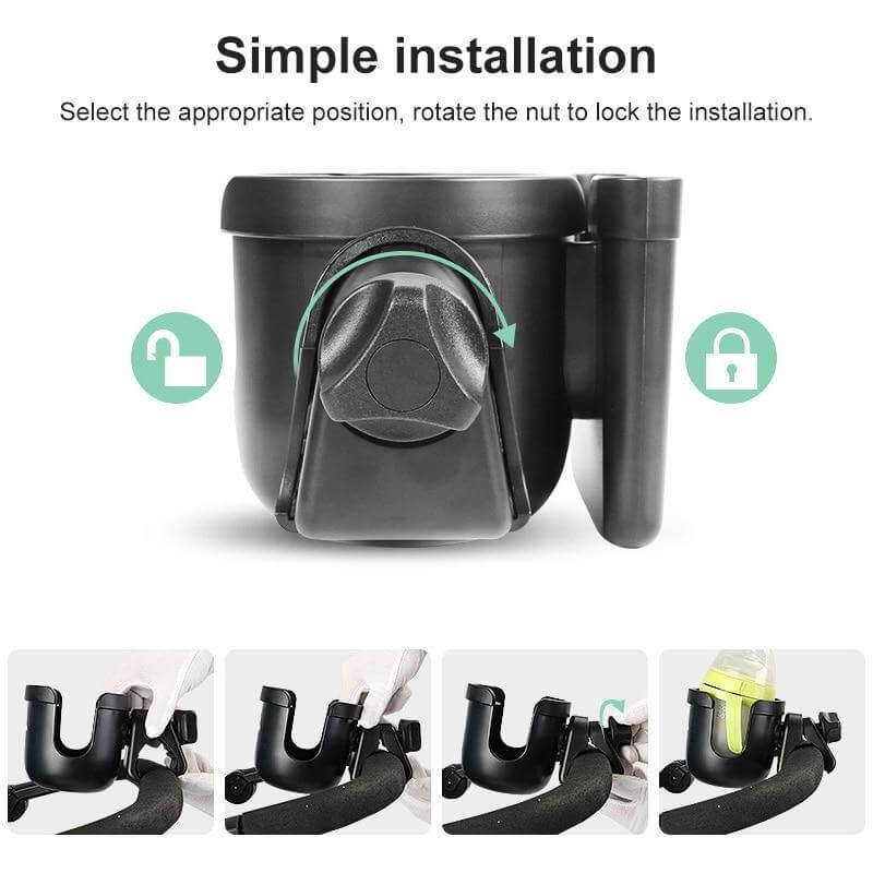 The Universal Baby Stroller Parent Cup & Phone Holder allows you to easily place your bottle and phone while strolling with your baby. Designed to fit most strollers, the universal parent cup and phone holder are a must-have for parents on the go. Our parent cup and phone holder is the ultimate accessory to any stroller. The cup holder is the perfect size to hold virtually any cup or drink securely. The phone holder securely holds most phones in place, including larger smartphones.
