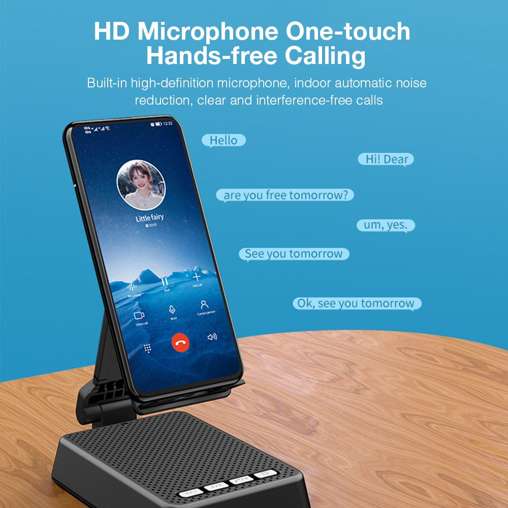 - The Portable Wireless Bluetooth Speaker/Phone Holder features a built-in 5W speaker for clear sound. The speaker can be placed on your desk, table, car, or bag with a compact, foldable design.