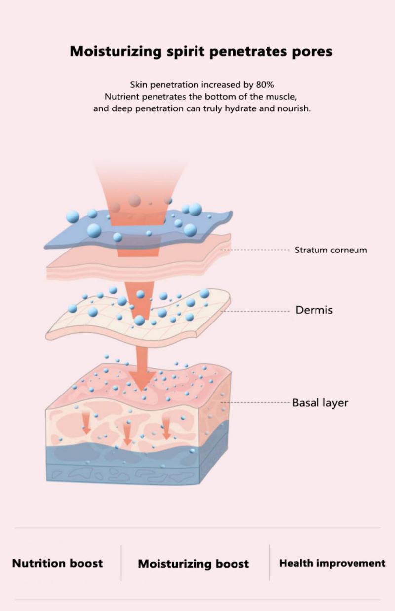 - High-frequency oscillation technology atomizes the water into -water mist and moderately replenishes moisture for 6 minutes to keep the skin in good condition.