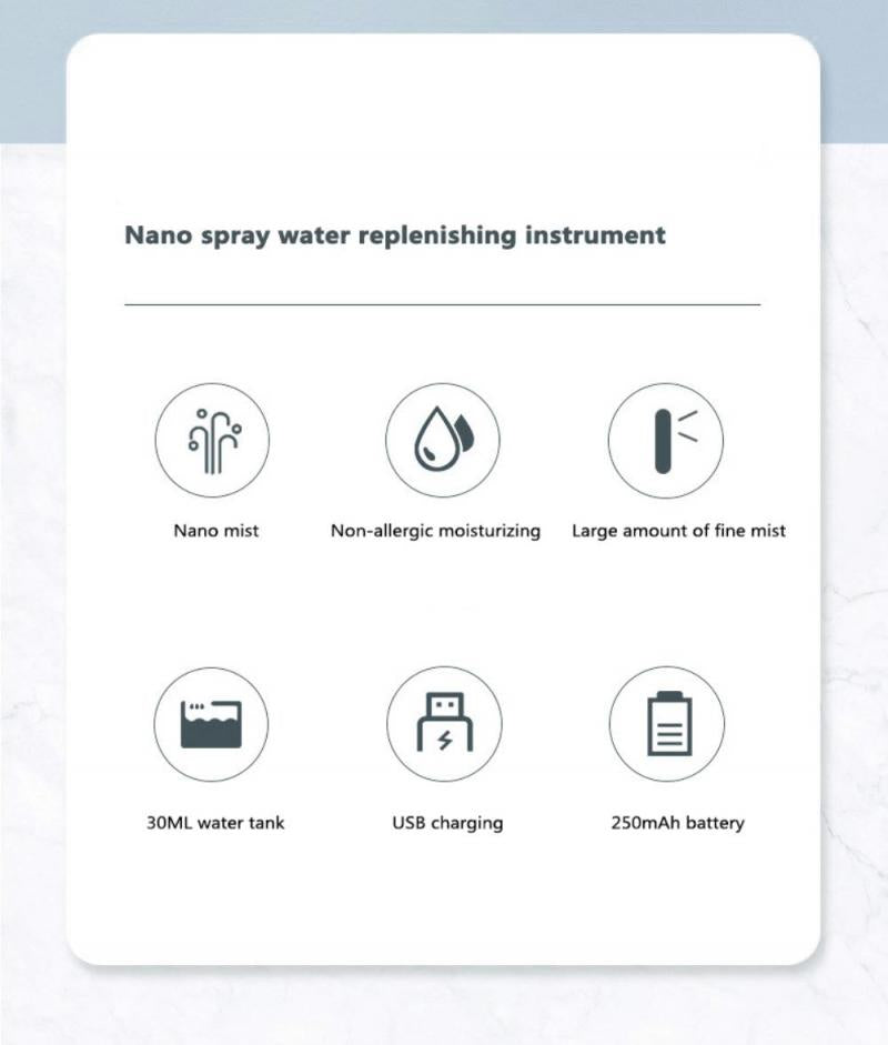 - Quickly turn on the spray, and the finely atomized molecules can reach the skin directly, lubricate every inch of the skin, and moisturize without makeup.