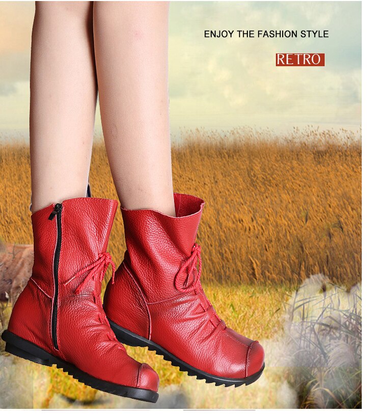 Vintage Look Winter Low Heel Casual Female Short Boots - Image 4