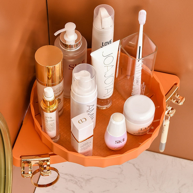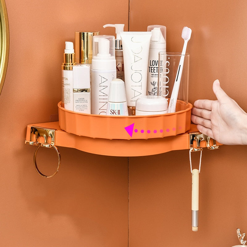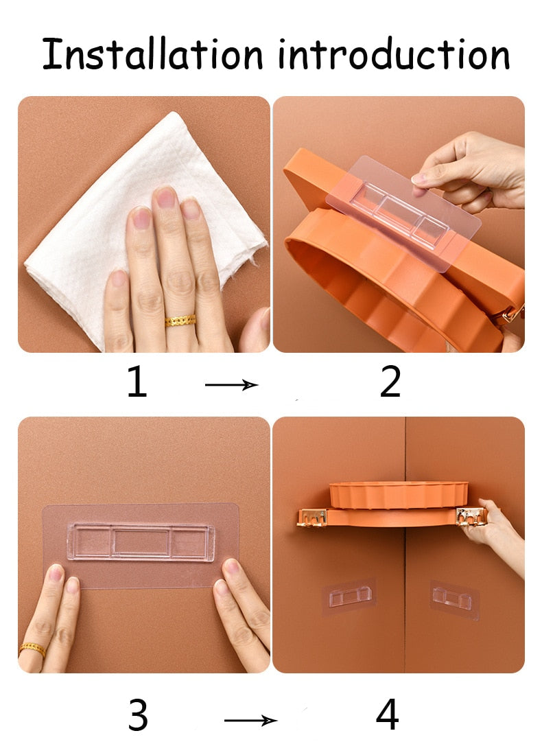 - Unlike another storage shelf, this wall-mounted and punch-free makeup storage rack is easy and convenient for you to install by sticking on the wall surface without causing any damage.
