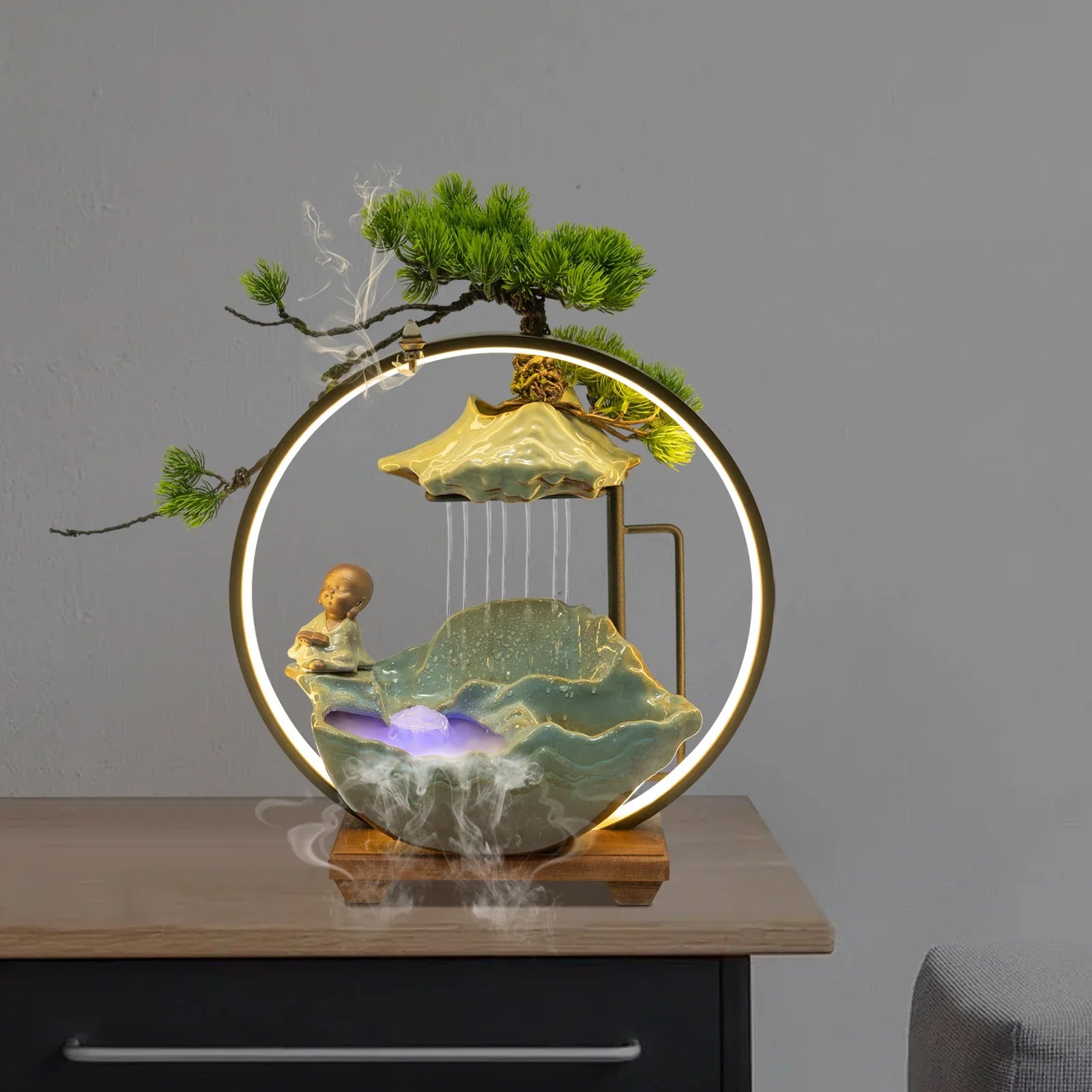 1x Waterfall Fortune LED Incense Burner Zen Decor