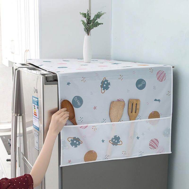 SIDE POCKET DESIGN: The refrigerator cover with 6 Pocket Storage, it can be used as a good storage organizer for kitchenware as gloves, bills, pens, scoops, and other daily stuff.
