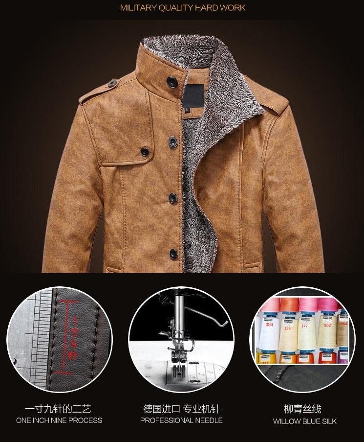 Windbreaker Leather Long Coats Jacket for Men - Image 6